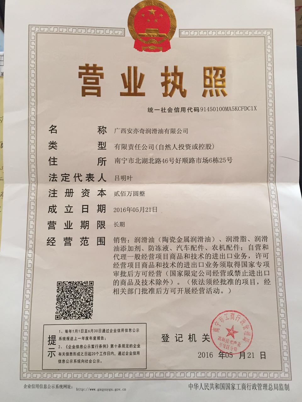 广西安亦奇润滑油有限公司,坐落于美丽的南宁市,是山东雷尔夫铁路润滑油有限公司授权生产的一家集研发、生产、贸易、市场服务等为一体的专业润滑油公司。安亦奇润滑油公司致力于打造民营润滑油企业的典范,润滑产品覆盖汽车用油、工程机械用油、工业设备用油、特种润滑油及刹车油、防冻液、防锈油等全系列化工产品。